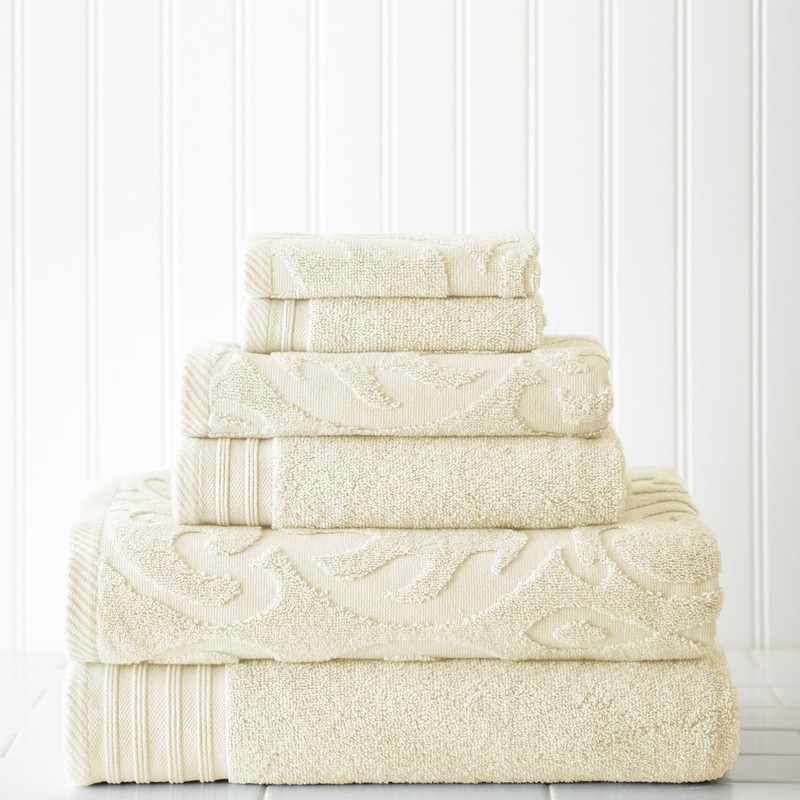 Modern Threads 6-Piece, 2 Bath Towels, 2 Hand Towels, 2 Washcloths, Medallion Jacquard/Solid Ultra Soft 550GSM 100% Combed Cotton Towel Set Ivory