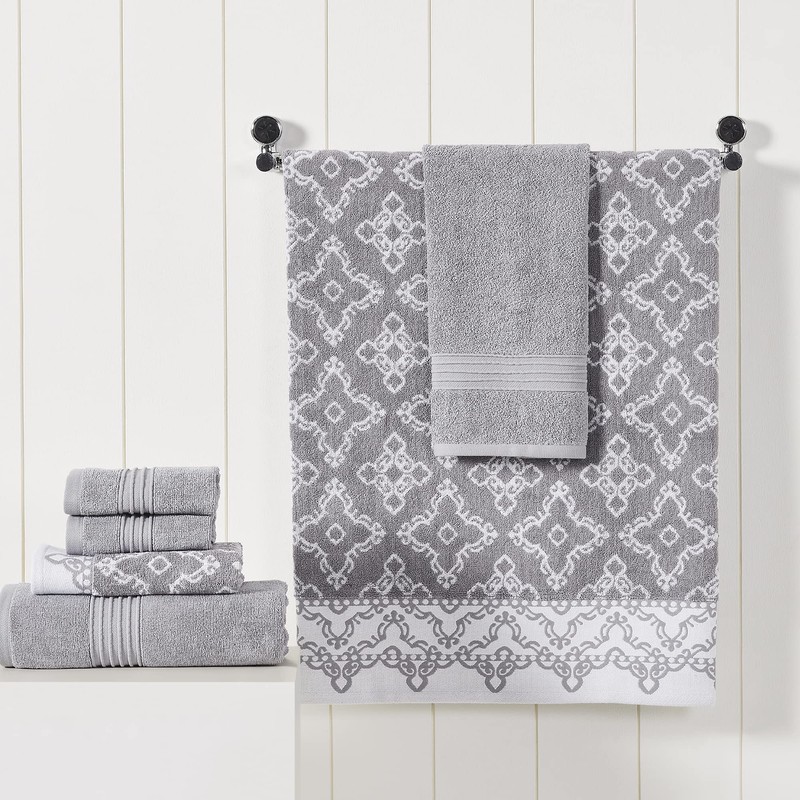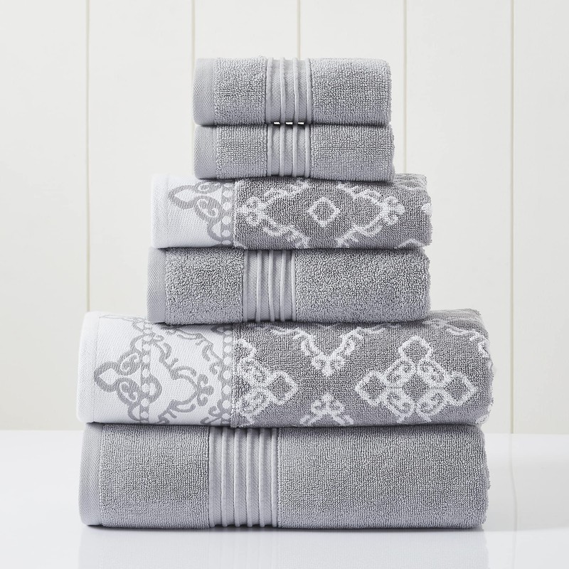 Modern Threads 6 Piece Set, 2 Bath Towels, 2 Hand Towels, 2 Washcloths Yarn Dyed Jacquard/Solid Towel Set Charlize Stone