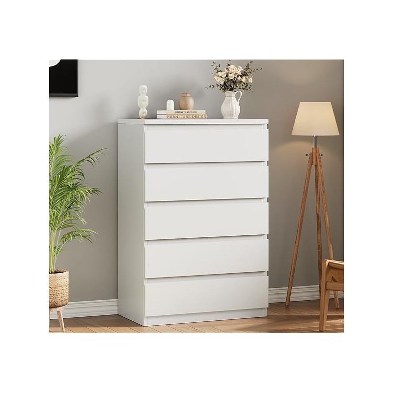 Modern White 5 Drawer Dresser for Bedroom, 15" D x 23.7" W x 40.4" H in Simply Chest of Drawers, Wood Storage Dresser with Deep Drawers for Living Room Hallway Entryway, White