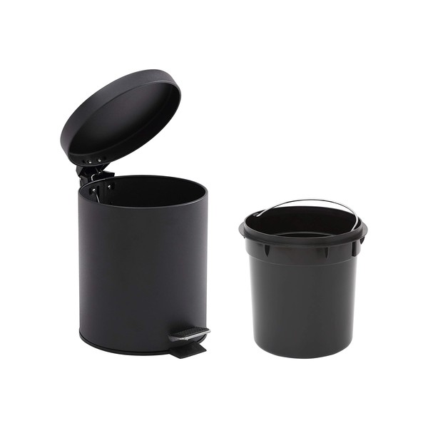 - MATTE BLACK: This bathroom trash can is strong and durable for your everyday needs. Made of steel with a painted black finish, say goodbye to the eyesore of a waste basket, and hello to your new bedroom, dorm, office, or bathroom decor.