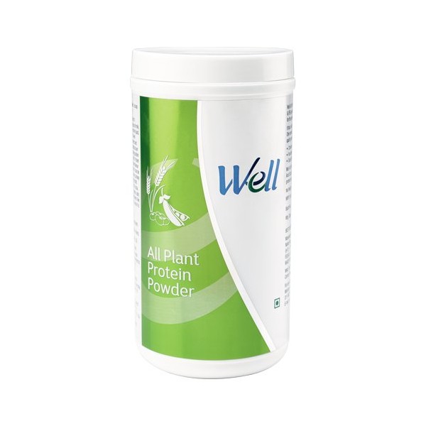 - Features & Benefits High protein content of more than 84% derived from plant sources. One serving (10g) of Well All Plant Protein Powder provides 8.4g of high quality protein. Cholesterol free Fat free Lactose Free No added sugar, colors, flavors and preservatives 100% Vegetarian Easily Digestible Non-GMO** Naturally occurring soy isoflavones Free flowing and highly soluble in liquids without forming lumps. Neutral in taaste