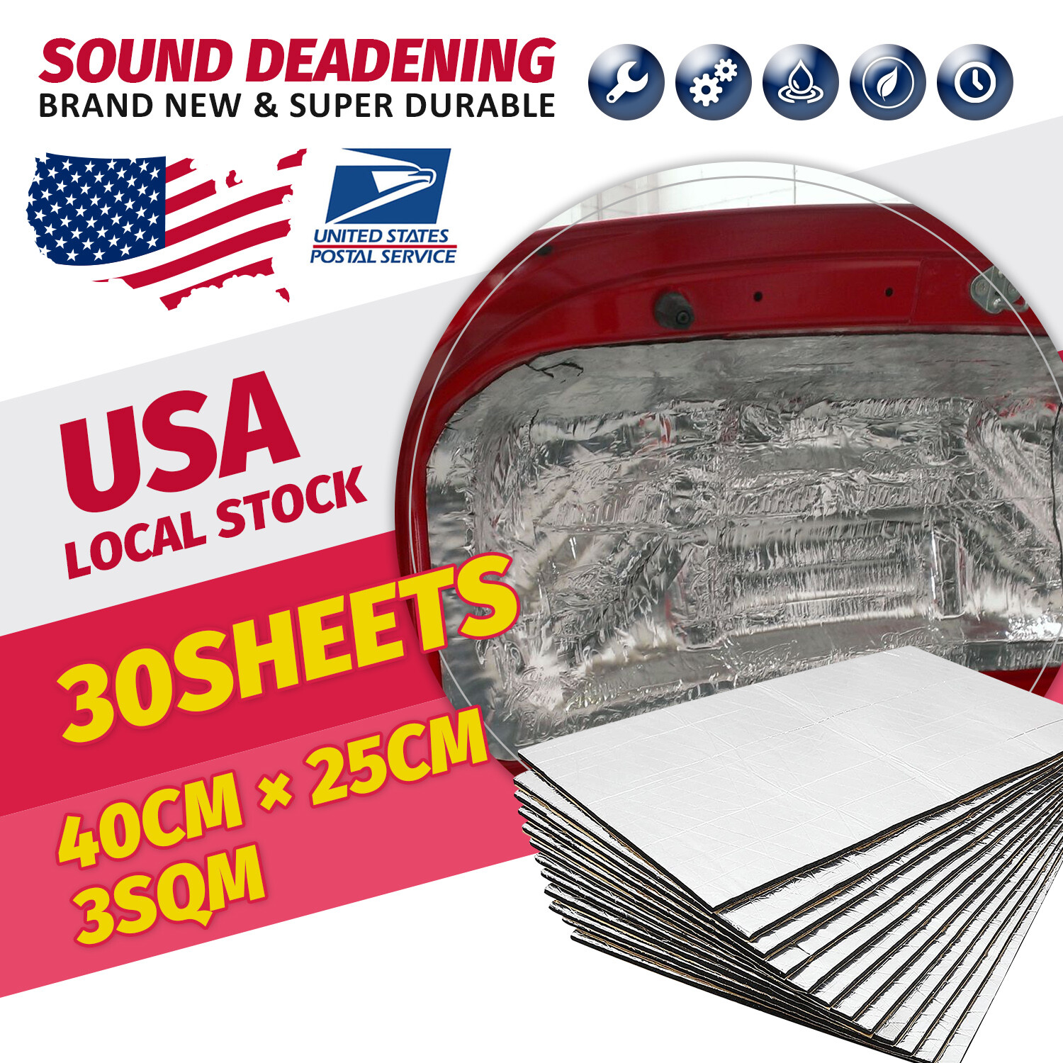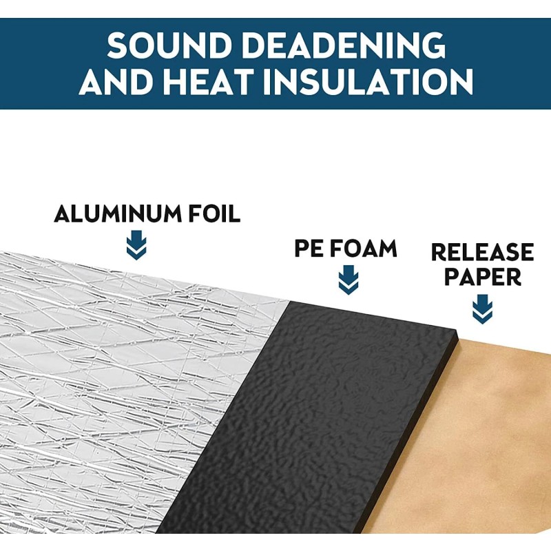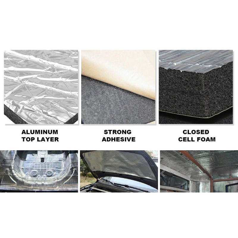 Feature: 1) This product is 100% brand new. 2) Can be used for the entire interior of any vehicle including: floor panel, door, carpet under/seat, headliner/roof, trunk, trunk lid, firewall (internal side). 3) By reducing or suppressing the sound vibration of the metal plate, you can eliminate road noise. 4) Easy to install, suitable for various car models, simply trim pieces to fit, peel and place and hand roll to ensure good adhesion. No messy spray paint or adhesive is required to install this product. 5) This car insulation is used in many applications, such as muscle cars, hot rods, light cruisers, imports, tuners, street rods, mouse rods, classic cars, racing cars, stock cars, old antique cars, pickups, trucks, low rider and many more. We even have customers using it on their SUVs, vans, RVs, luxury cars, campers, yachts, RVs and school buses.