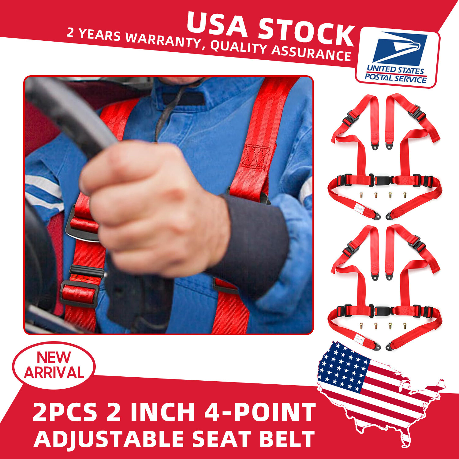 1Pair 2" 4 Point JDM Racing Car Harness Seat Belt RED Strap for Universal Car