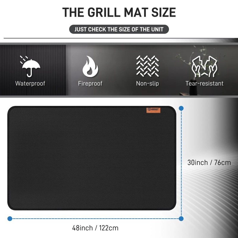 Specifications ▸Brand: MODIGT ▸Type: BBQ grill mats ▸Thickness: 0.55mm ▸Heating range: -94 ℉ to 500 ℉ ▸Size: 48 inch x 30 inch ≈ 122 cm x 76 cm ▸Material: Aramid thread, silicone, fiberglass ▸Safe, non-toxic, durable, and easy to clean ▸100% brand new, anti slip, waterproof, fireproof, and anti stick ▸High quality thickened square barbecue mat, anti scorching and anti sticking, your best choice.