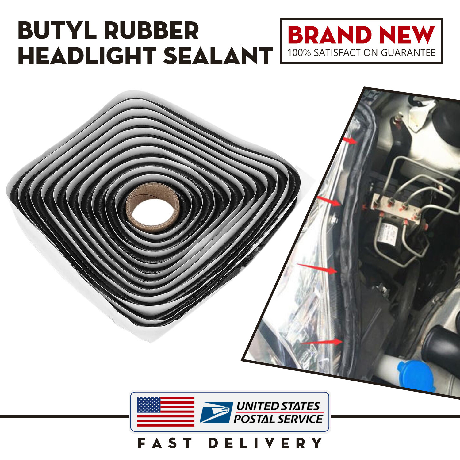 - Package include: 1 Pcs x 13ft. Black Butyl Rubber Headlight Sealant