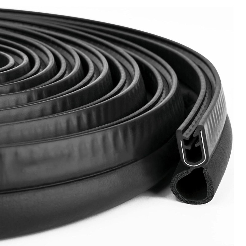- Flexible edge trim slides on easily to cap any edge, for car doors, lids, and about any other exposed edge.