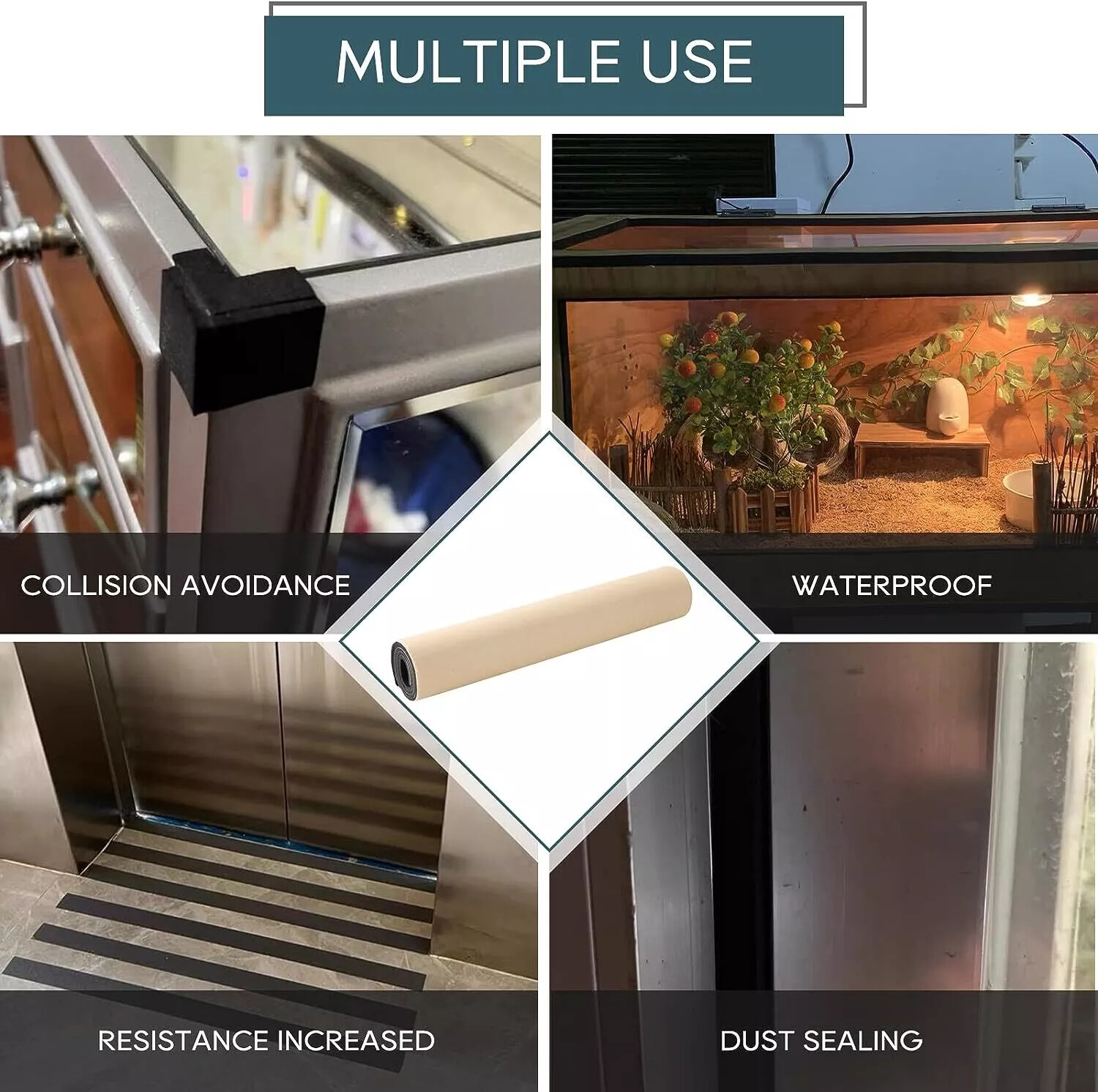 The high-density rubber strip is covered with strong adhesive backing and it is non-degumming, so the rubber sheet can stick firmly for a long time and leave no residue when it is to be removed