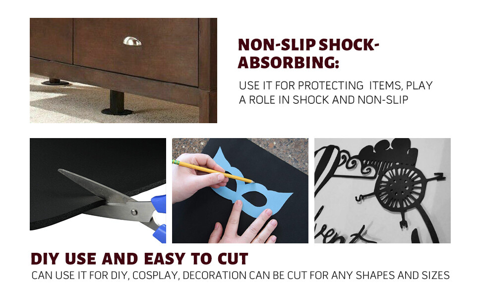 The DIY projects sheet is an all-around foam sheets padding and sealing tool that can be used on weather stripping doors, gaskets and pipes. Can be applied to cabins, decks, cars, etc for anti-slip and waterproof use;can be applied to floors, furniture for protection,it can also be used for clothing, role playing and decorationIt.Is also easy to work with and can be conformed to any size and shape with the use of a pair of scissors or cutter, making it a great tool for cosplays,padding, props, costumes and craft tool.