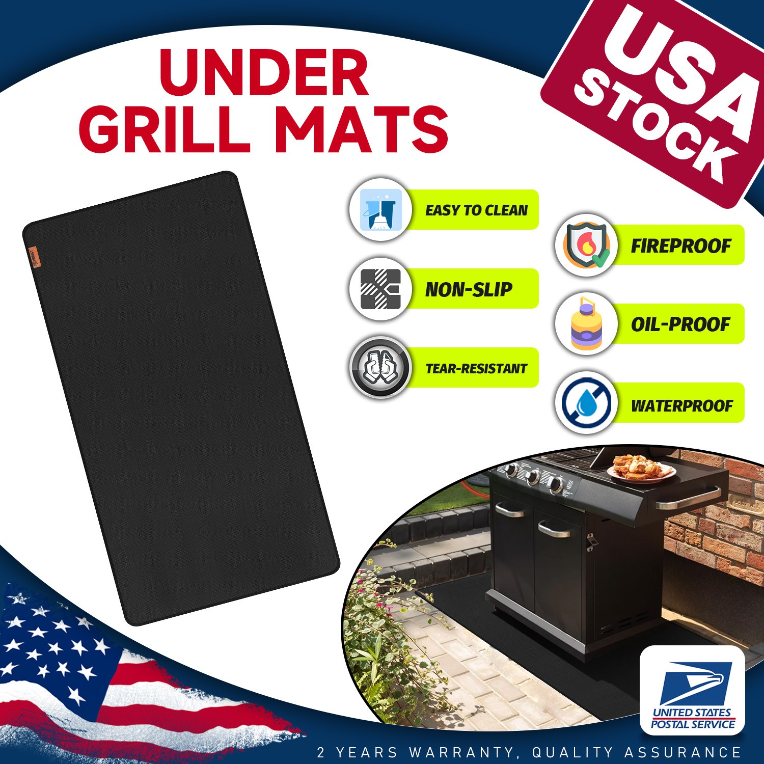 The under grill mat has excellent fire resistance and easy cleaning, ideal for charcoal grills, gas grills, smokers, fire pits and fireplaces, protecting composite decks, concrete ground, lawns and wooden floors from stains and heat damage, a great choice for patio parties, outdoor camping.