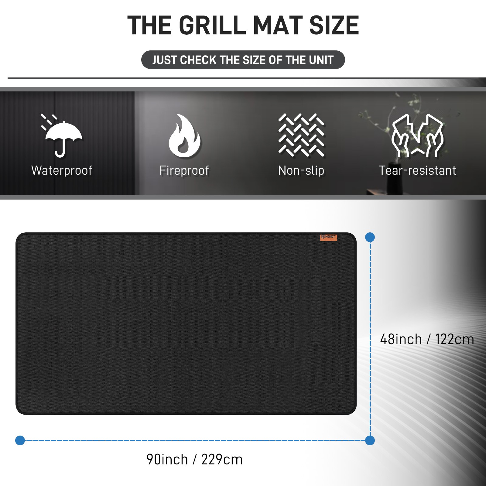 Modigt 90"x48" Under Grill Mat for Outdoor Grill Double-Sided Fireproof BBQ Grill Pad