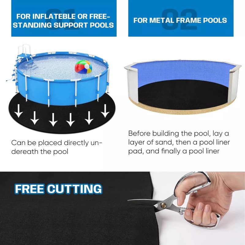 PROTECT YOUR LINER - This pool liner pad is made from a special cloth fiber that is thick and durable. Defend your liner against cuts and punctures from rocks, roots, nutgrass, glass, and other harmful debris found on the ground. It will provide a flat base that gives an extra layer of armor for your swimming pool floor bottom prior to liner installation.