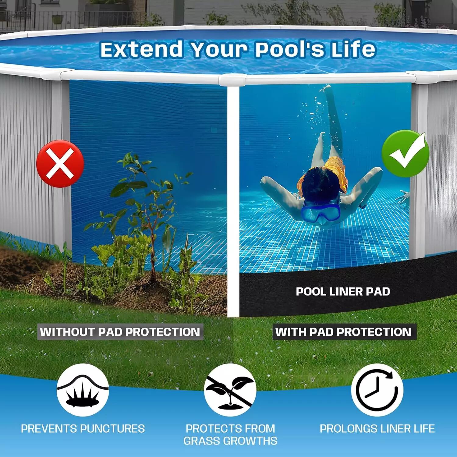 PROTECT YOUR LINER - This pool liner pad is made from a special cloth fiber that is thick and durable. Defend your liner against cuts and punctures from rocks, roots, nutgrass, glass, and other harmful debris found on the ground. It will provide a flat base that gives an extra layer of armor for your swimming pool floor bottom prior to liner installation.