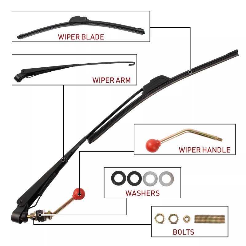 Universal Replacement Kit UTV Manual Hand Operated Windshield Wiper Rubber Blade