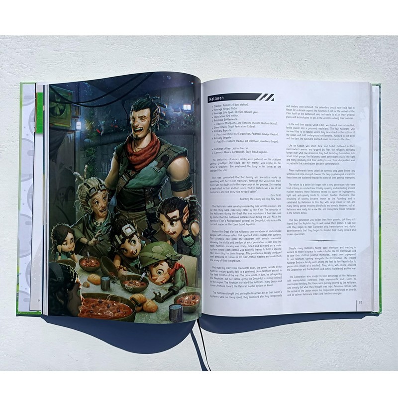 - An overview of the setting’s history, technology, species, cultures, and systems. Deep dives into the lore of the eight core playable species: the Corporation (Vargarti), Kaltoran, Legion, Nephilim, Palantor, Remnant (Ursai), Twi-Far and Zhou.