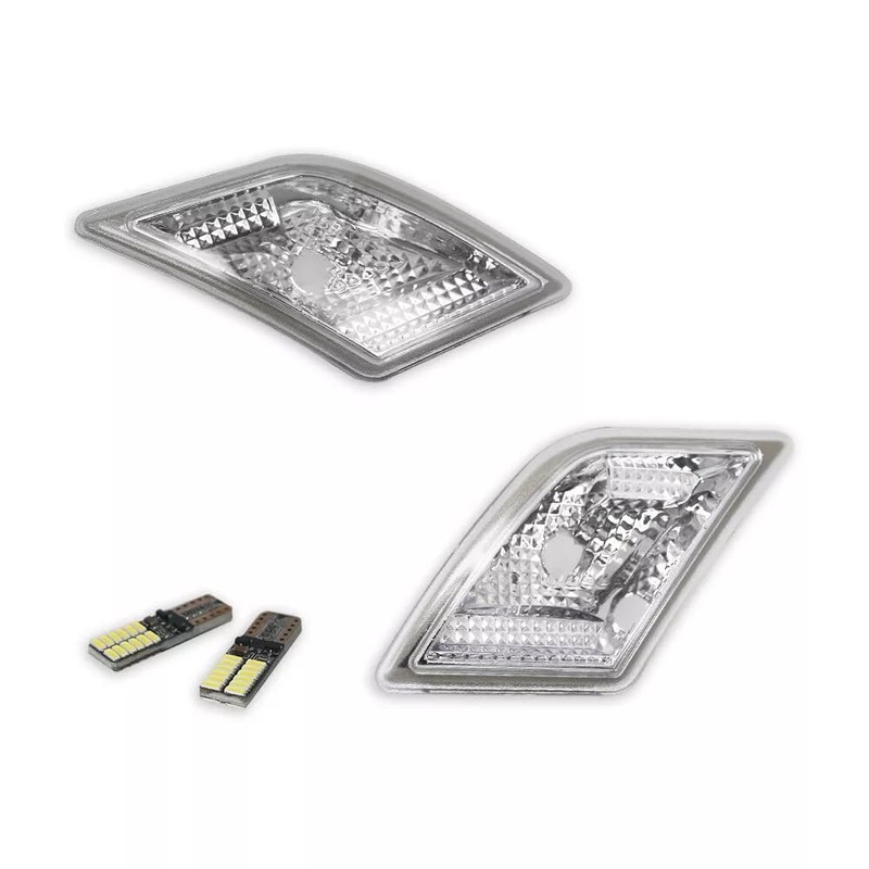 - This page feature this pair of clear lens side marker lamps with error free xenon white LED bulbs combo set for the following Mercedes Benz W204 C-Class replacing their original amber sidemarkers with the stock incandescent bulbs inside.