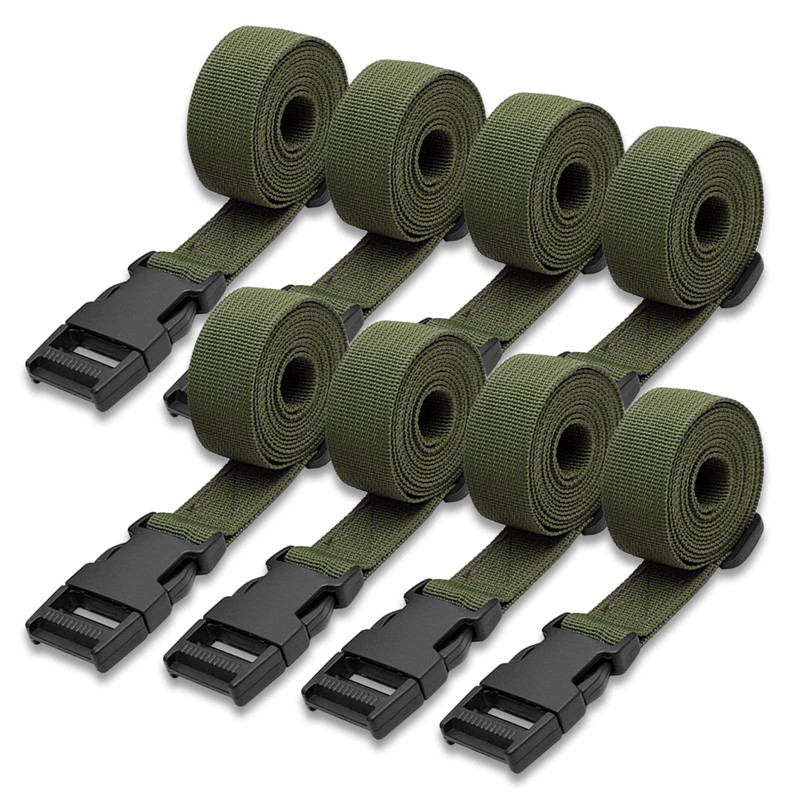Modixun 8 Pack Utility Straps with Quick Release Buckle, 1.5M Adjustable Nylon Straps, Nylon Lashing Straps for Backpack, Sleeping Bag, Luggage Packaging, Green