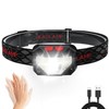MODOAO Headlamp Flashlight,6 Modes Super Bright LED Rechargeable Headlight with White Red Light,Waterproof Motion Sensor Head Lamp,for Head Lamp Light for Outdoors Emergency (1 Pack)