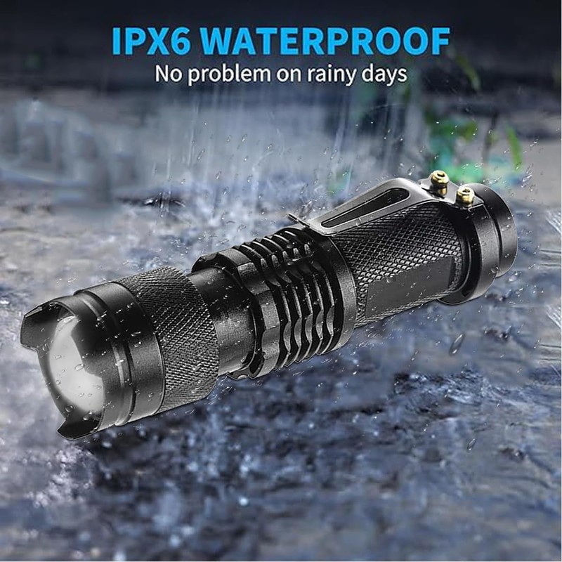 - 【Waterproof Flashlight】- Compact light torch small made of durable aluminum alloy casing, and there has a waterproof rubber ring at the tail, skid-proof & water resistant. It can be used in extreme weather such as rain, heavy snow. It's a reliable flashlight for outdoor activities. Mini size and steel body clip, easy and lightweight to carry it anywhere.