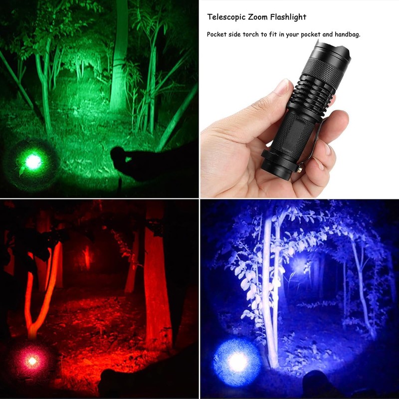 MODOAO LED Flashlight, Zoomable Waterproof Torches with Clip, 3 Light Mode for Camping, Night Fishing, Hunting, Hiking, Night Vision, Astronomy, Emergency and Daily Carry (2 Pack - r+g)