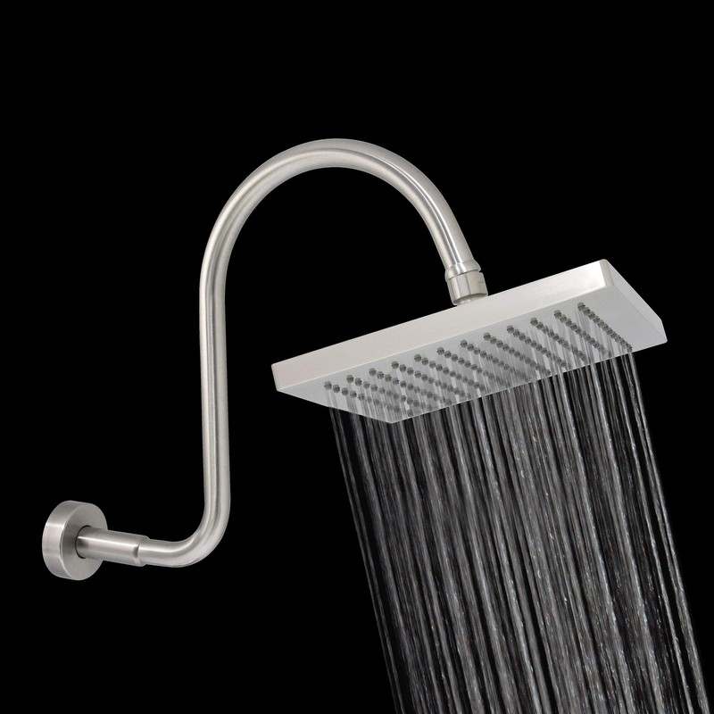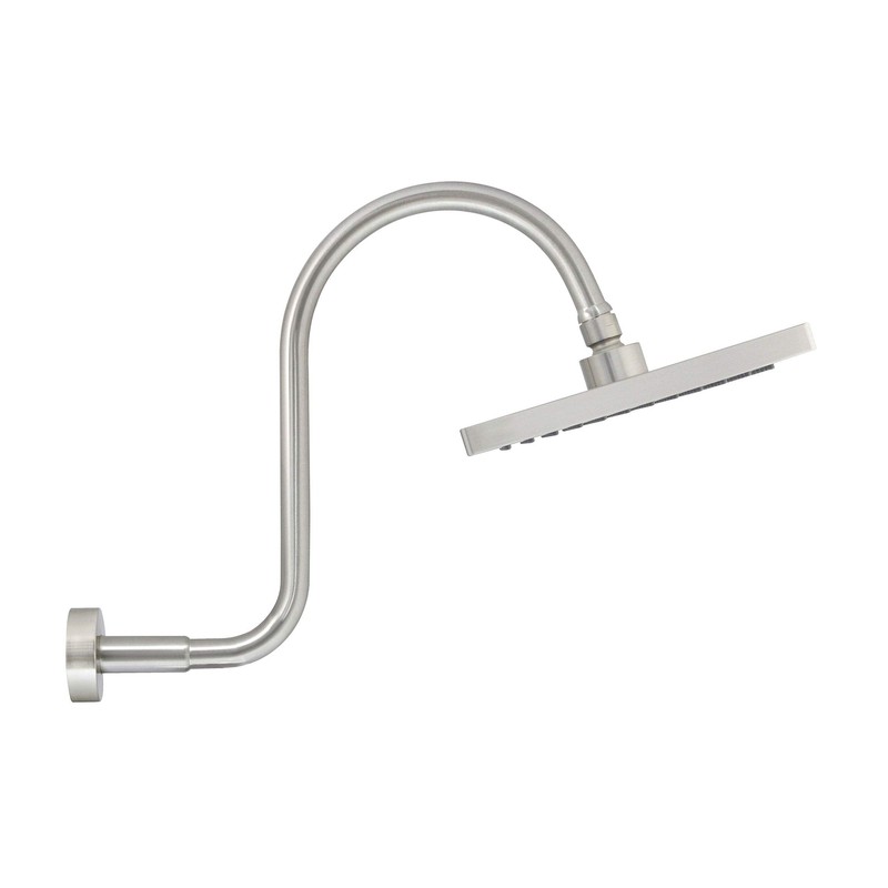 MODONA 8” SQUARE Rain Shower Head and “S” Gooseneck Shower Arm with Flange – Satin Nickel - 5 Year Warranty