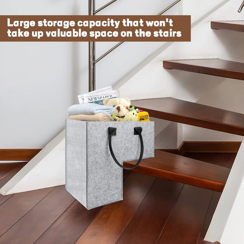 - 【Soft Felt Material】Made of 4mm thickness durable felt material and faux leather handles, which is durable and firm; our basket for stairs won't scratch wood floors or snag on carpeted stairs also make full use of the space of your stairs