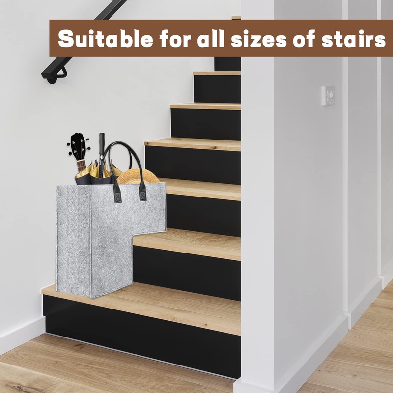 - 【Soft Felt Material】Made of 4mm thickness durable felt material and faux leather handles, which is durable and firm; our basket for stairs won't scratch wood floors or snag on carpeted stairs also make full use of the space of your stairs
