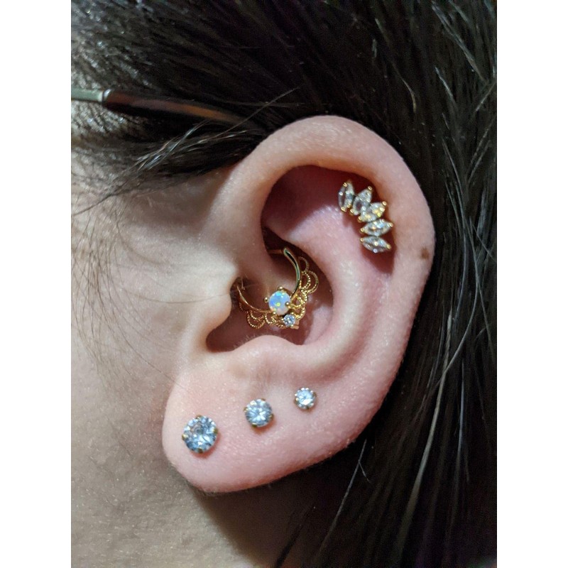 - [Feature]: This 16g cartilage piercing jewelry contains 3 designs of gold cartilage jewelry; Basic flat back stud earrings have different sizes for different usage.