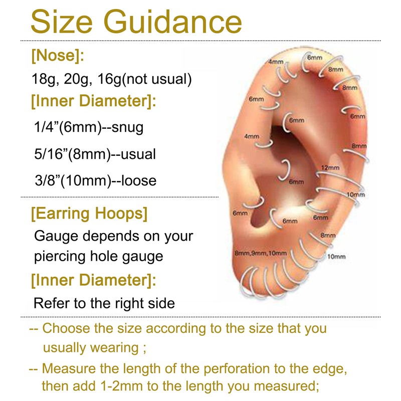 - [Measurements]: Hoop nose ring 18 gauge (1.0mm), double hoop nose ring nose hoop inner diameter: 3/8"(10mm);