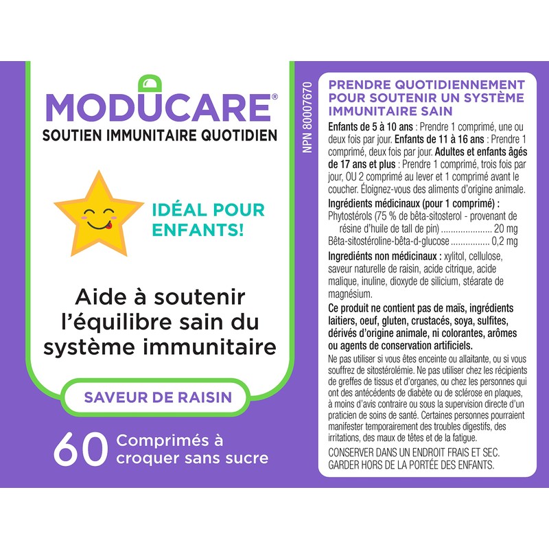 • Kids grape chewable Moducare is an excellent source of plant sterols and sterolins