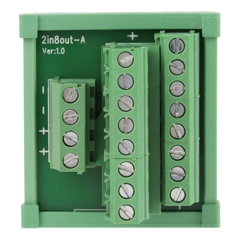Modular Board 2 in 8 out Din Rail and Panel Mount Power Distribution Module Breakouts Board Terminal Block Connectors with Simple Din Rail Mounting Feet for 35mm Width Rails