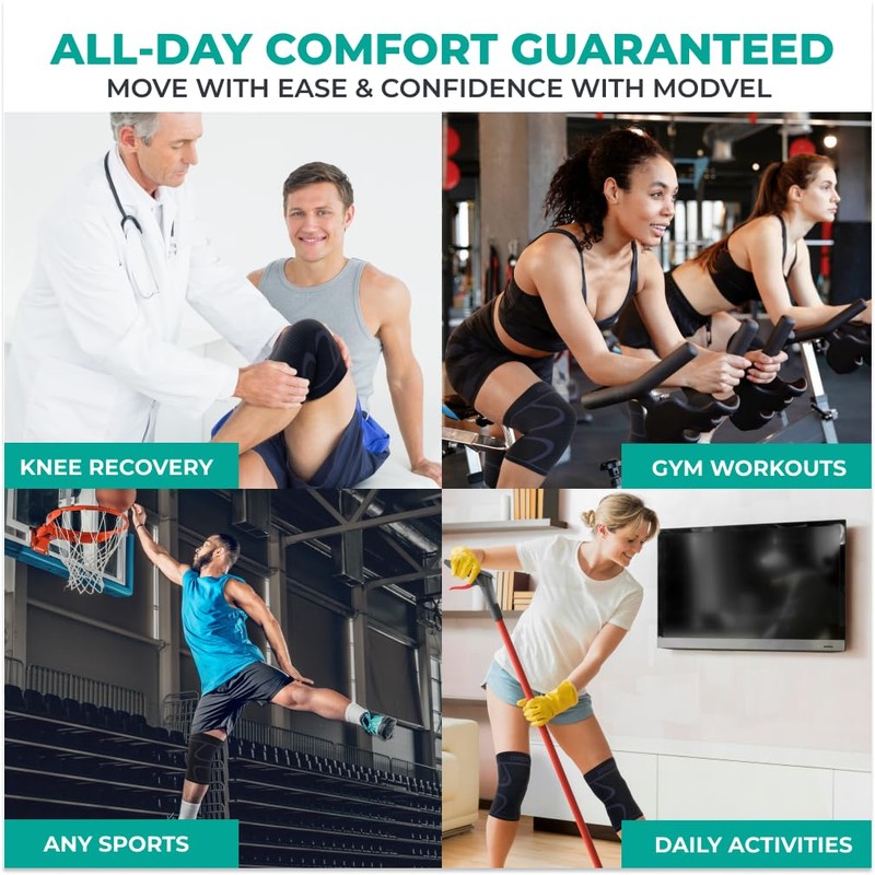 Modvel Compression Knee Brace for Women & Men - 2 Pack Knee Brace for Women Running Knee Pain, Knee Support Sleeve, Workout Sports Braces for Meniscus Tear ACL & Arthritis Pain Relief