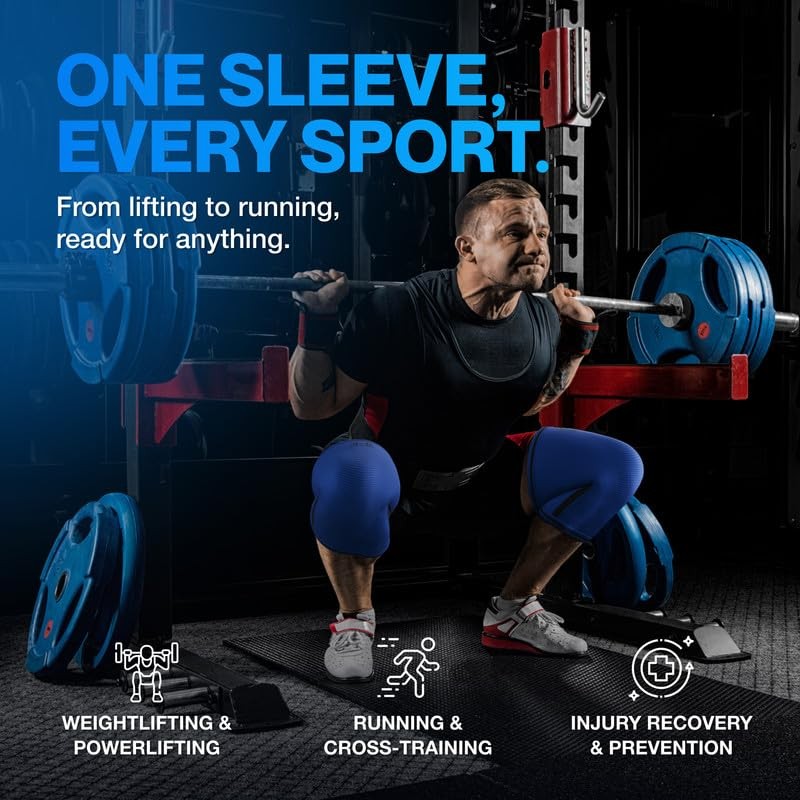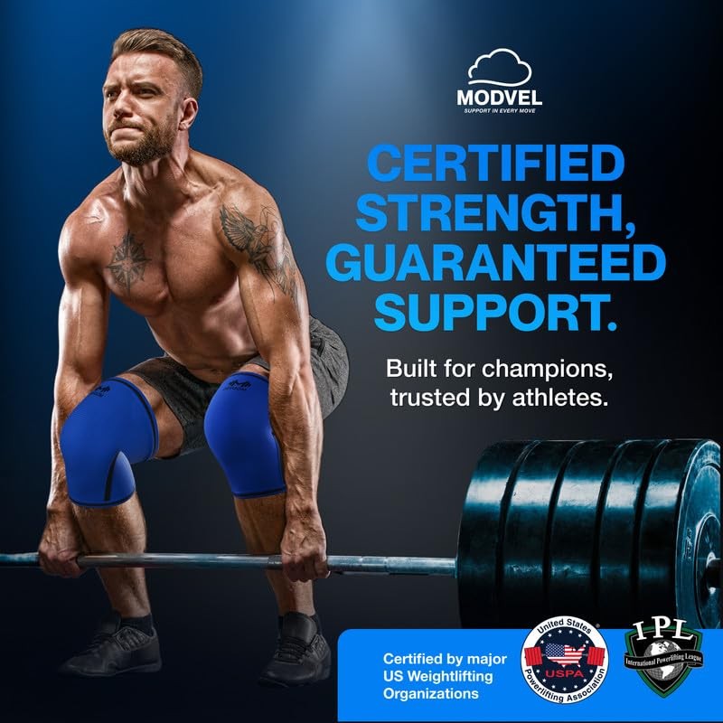 Modvel Strength 7mm Neoprene Knee Sleeves for Men and Women (Pair) - For Weightlifting & Powerlifting, USPA, IPL Approved, High Performance Knee Compression Support For Squats Large Blue