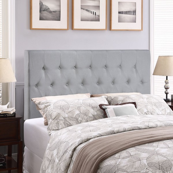 Modway MOD-5202- Clique Tufted Button Diamond Pattern Linen Fabric Upholstered Queen Headboard in Gray