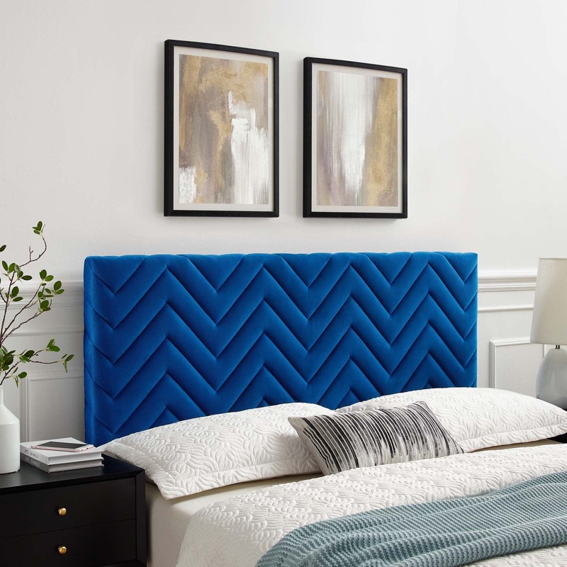 Modway MOD-6658-NAV Mercy Chevron Tufted Performance Velvet Twin Headboard, Navy