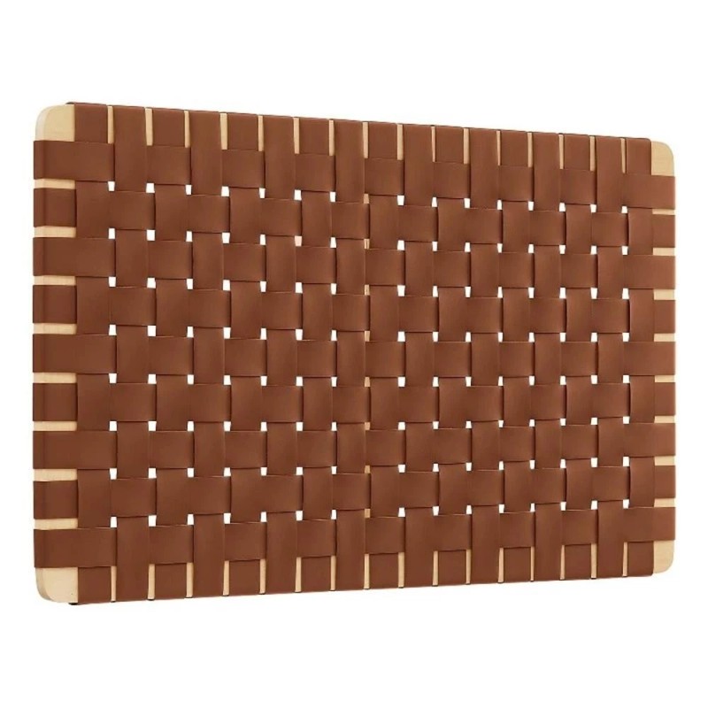 Modway Sparta Weave Wall-Mount Vegan Leather Twin Headboard in Natural Brown