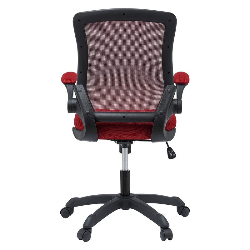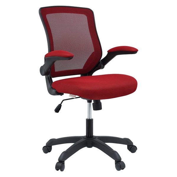 Modway Veer Office Chair with Mesh Back and Vinyl Seat With Flip-Up Arms in Red