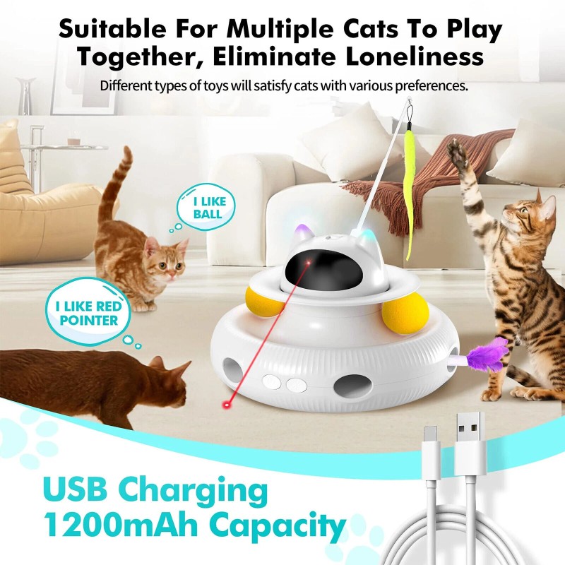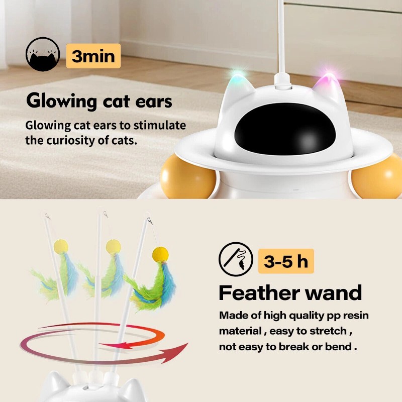 - 【Free your hands!4 In 1 Automatic Cat Interactive Toy】4-In-1 Interactive cat toy has three fun ways to enjoy interactive playtime! Electronic cat toy combines with a cat feather toy and automatic cat light toy,Cat Ball Toy.Giving cats treble happiness and it can train their natural hunting, biting and scratching instincts while playing.This cat ball toy will help keep your indoor cat stay physically and mentally active with multiple ways to play!