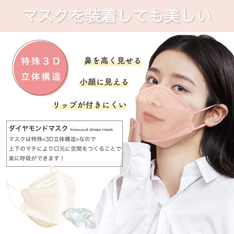 - Sculpted Diamond Structure: This willow leaf-shaped KF94 mask is very popular in South Korea, and has also been garnering rave reviews in Japan, particularly on social media. “Lipstick doesn’t get on it easily.” “It doesn’t fog up my glasses.” “It’s easy to breathe in it.”