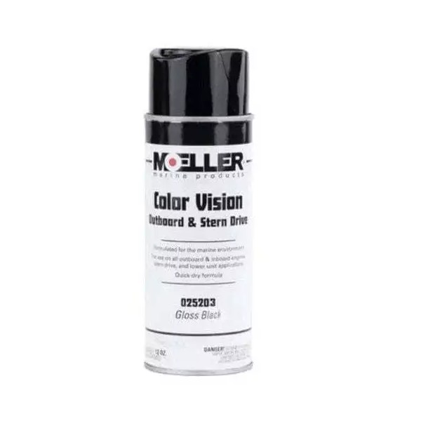 Moeller Spray Paints are available in different colors and made to match your engine's original color. Formulated for the marine environment for use on outboard and inboard engines, stern drive, and lower unit applications. Quick dry formula resists oil and gasoline. Comes in 12 oz cans.