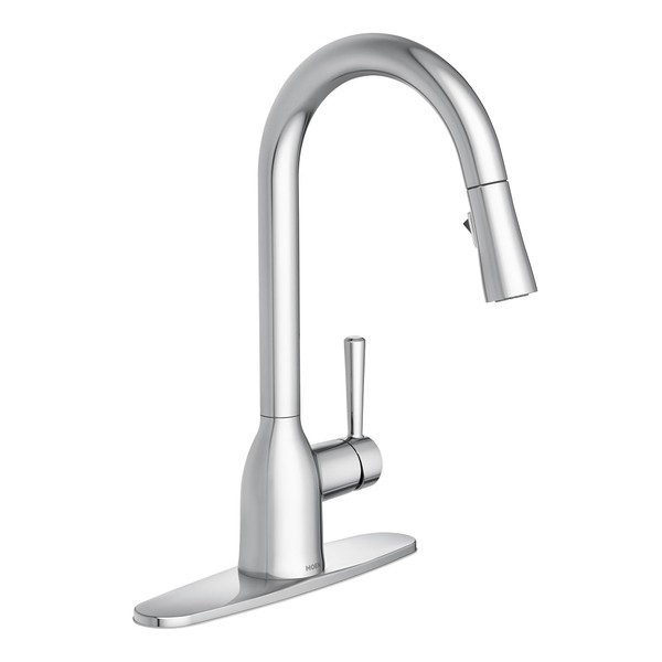 Moen Adler Chrome One-Handle High Arc Kitchen Sink Faucet with Power Clean, Modern Kitchen Faucet with Pull Down Sprayer, 87233