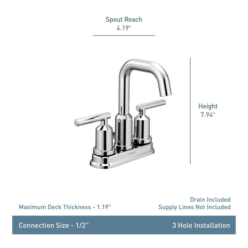 Moen Gibson Chrome Two-Handle Centerset High Arc Modern Bathroom Faucet with Drain Assembly, 6150