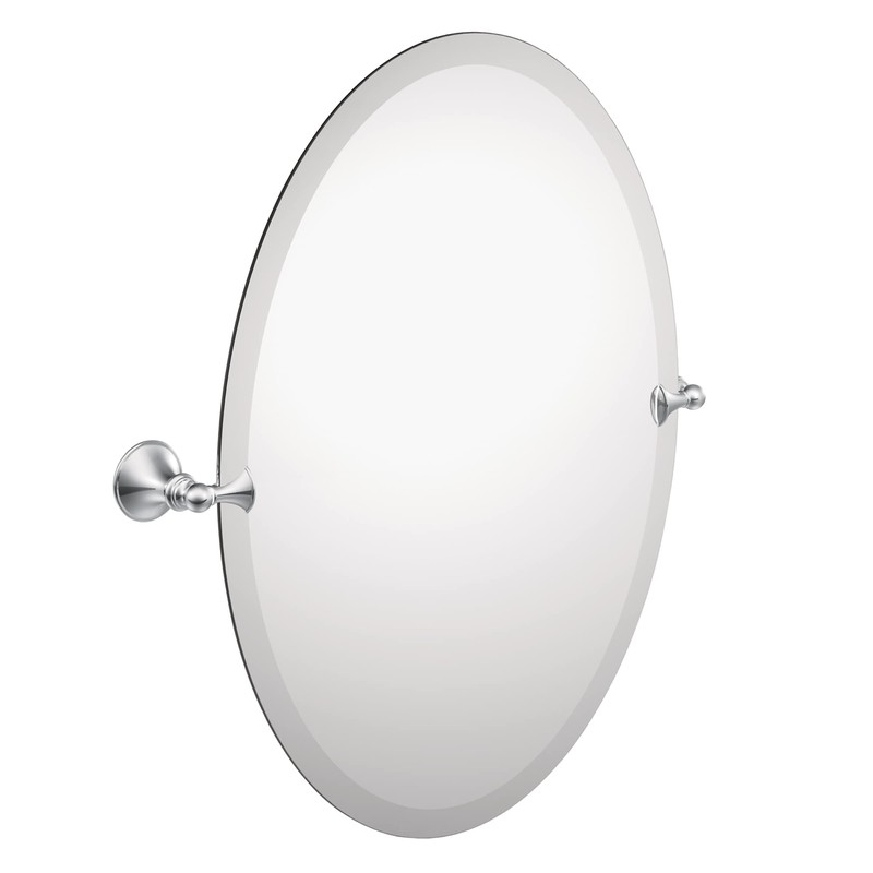 Give your bathroom a clean, modern look with the Moen Glenshire Oval Tilting Mirror. With hardware available in chrome and brushed nickel finishes, this frameless beveled mirror tilts to allow you to easily adjust the angle. The Glenshire Mirror comes with mounting hardware and a convenient template that help take the guesswork out of installation. It is backed by Moen's Limited Lifetime . From the Manufacturer Infuse sophistication and serenity into your bath or spa area with the Glenshire coordinating designs. The Glenshire oval tilting mirror in the chrome finish has soft, smooth lines and the simplicity of the design will add a calm, relaxed air to any space. Easy to install, create your own oasis with these featured designs in minutes. Moen is dedicated to designing and delivering beautiful products that last a lifetime. Moen offers a diverse selection of kitchen faucets, kitchen sinks, bathroom faucets and accessories, and showering products. Moen products combine style and functionality with durability for a lifetime of customer satisfaction.