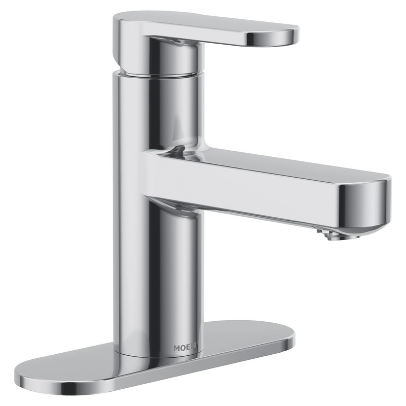 Moen Laris Chrome One-Handle Single Hole Modern Bathroom Sink Faucet with Optional Deckplate and Spring Loaded Drain Assembly, 84014
