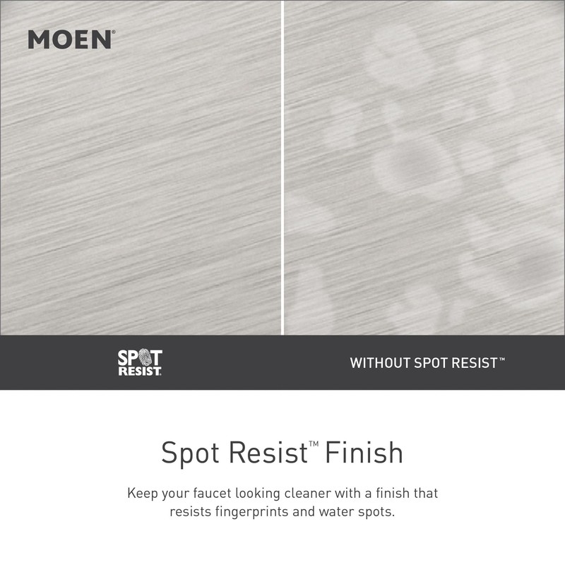 - Spot Resist Nickel finish resists fingerprints and water spots for a cleaner-looking bath