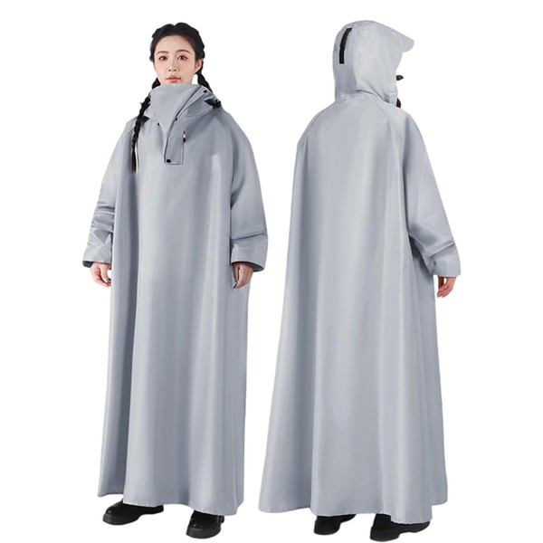 [Moerstar] レインコート メンズ レディース 自転車 ロング レインポンチョ バイク カッパ 超防水 防雨 防風 梅雨対策 豪雨対策 耐久性 男女兼用 ポンチョ 雨具 雨合羽 通勤 通学 アウトドア おしゃれ 快適 通気性 (グレー, M)