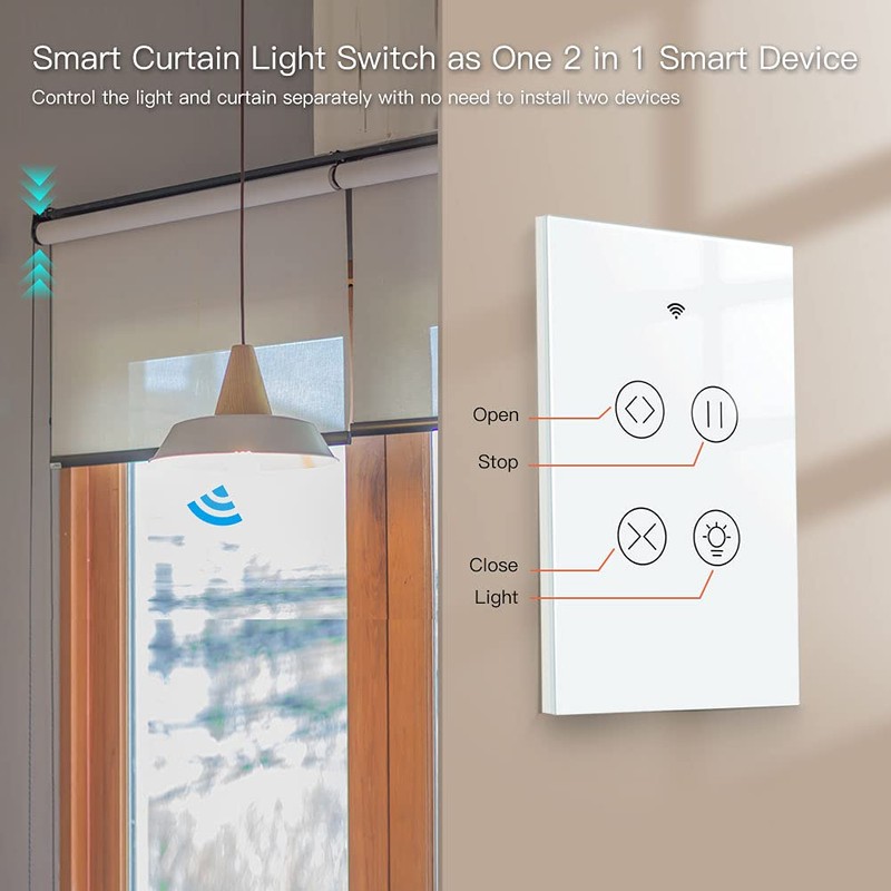 MOES 2.4GHz WiFi RF Smart Curtain Light Touch Switch Glass Panel Backlight ON/Off Wireless Remote Control with Tuya Smart Life App, Voice Control with Google Home Alexa, White