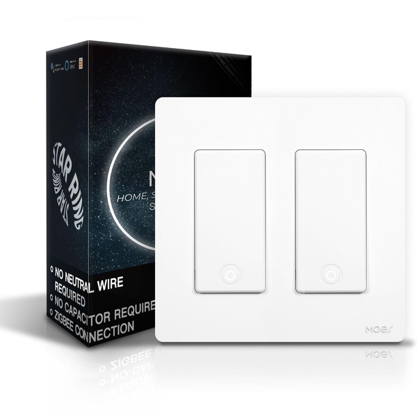 MOES Zigbee Smart Switch 2 Gang, No Neutral Wire Required, Inteligente Single Pole Light Switches, Compatible with Alexa Google Assistant, Remote Control, Require MOES Zigbee Hub