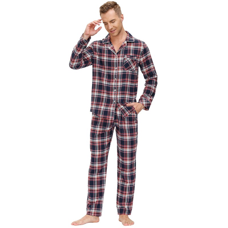- High Quality Material: The most comfortable cotton pajama sets for men. This Modal Sleep sets is made of woven plaid cotton. The fabric is soft,comfortable, breathable and lightweight, which is loose fit and provide maximum comfort.The solid color process makes the pajamas more neat and stylish.