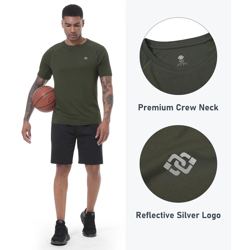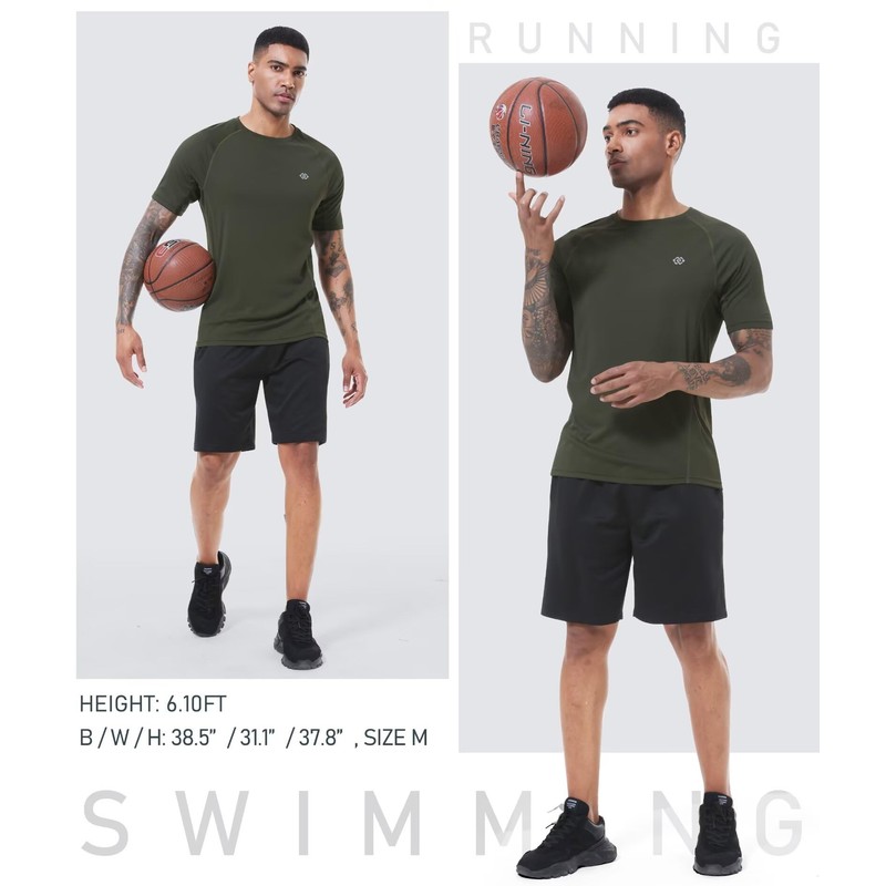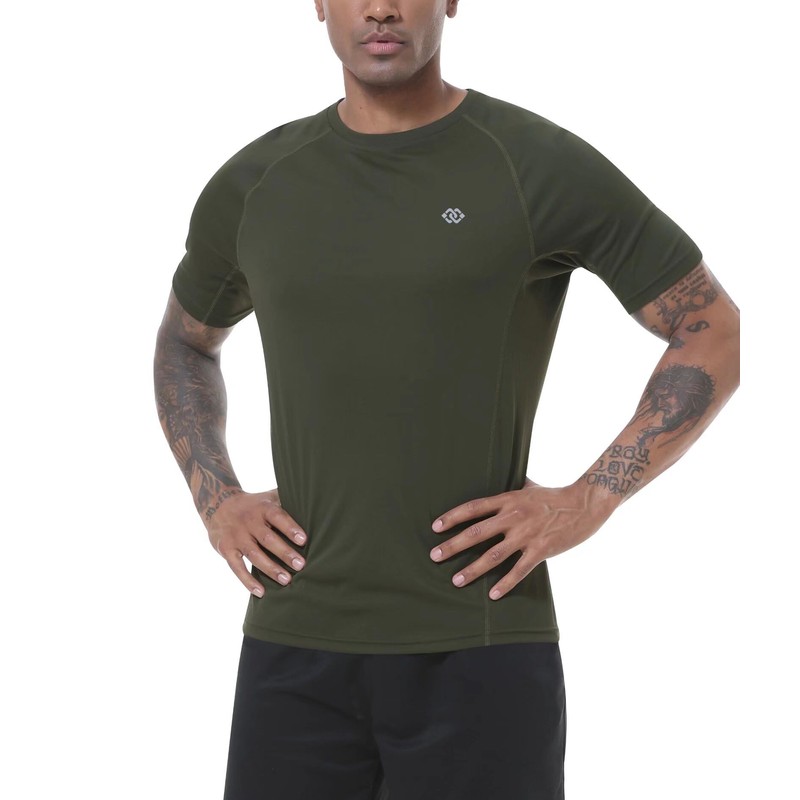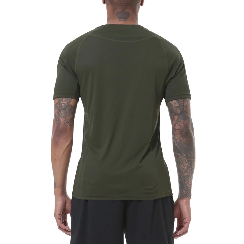 MoFiz Men's Watersport Rash Guards UV Swim Top Swimming Shirts Quick Dry UPF 50+ Short Sleeve Surfing Running Sports Top Verde Militar M