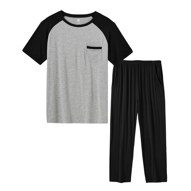 - Mens Pajama Sets Desigin:Sleepwear Pants has two side pockets, elastic waistband and adjustable drawstring. Without Open fly front ,make your moving freely.Sleepwear Top: short sleeves craw neck design and with the Patchwork color One-Pockets ,this design is classic,make more relaxed wearing them.